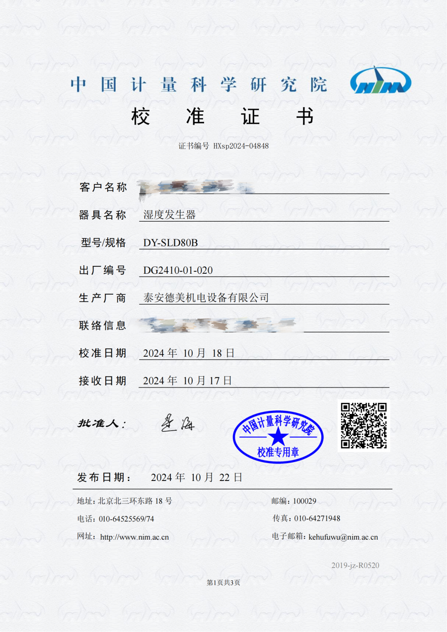 | 上一條:露點(diǎn)儀校檢定證書 | 下一條:便攜式溫濕度檢定箱(-10-60℃)校準(zhǔn)證書 |