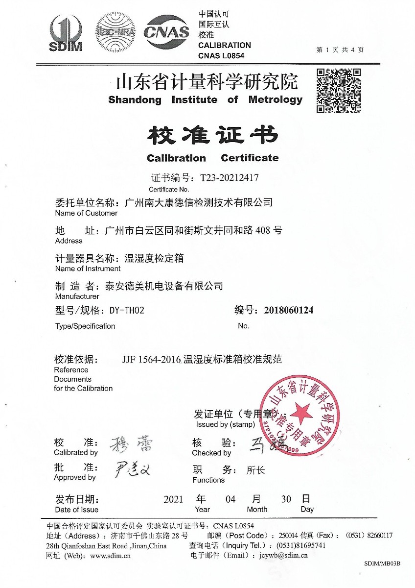 廣州南大康德信檢測技術有限公司-溫濕度檢定箱 2021-5-15 本文被閱讀 15122 次