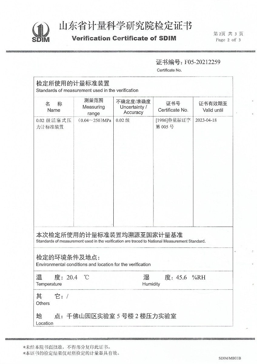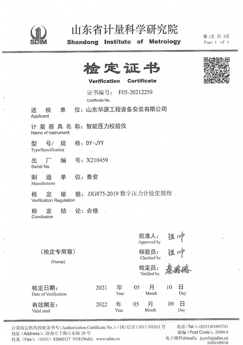 | 上一條:山東華源工程設(shè)備安裝有限公司-智能壓力校驗(yàn)儀X210458 | 下一條:便攜式干體爐(-30-150℃)校準(zhǔn)證書 |