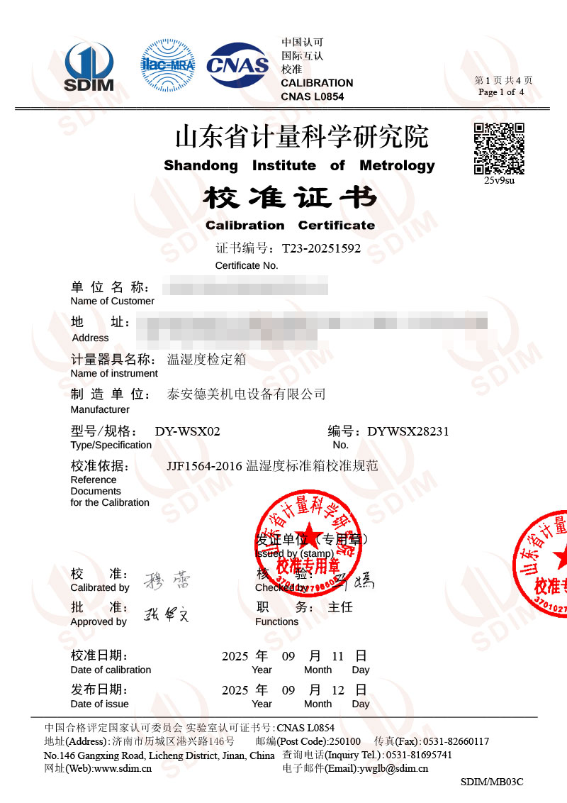 | 上一條:輻射源黑體爐(室溫+5-300℃)校準(zhǔn)證書 | 下一條:便攜式干體爐(-30-150℃)校準(zhǔn)證書 |