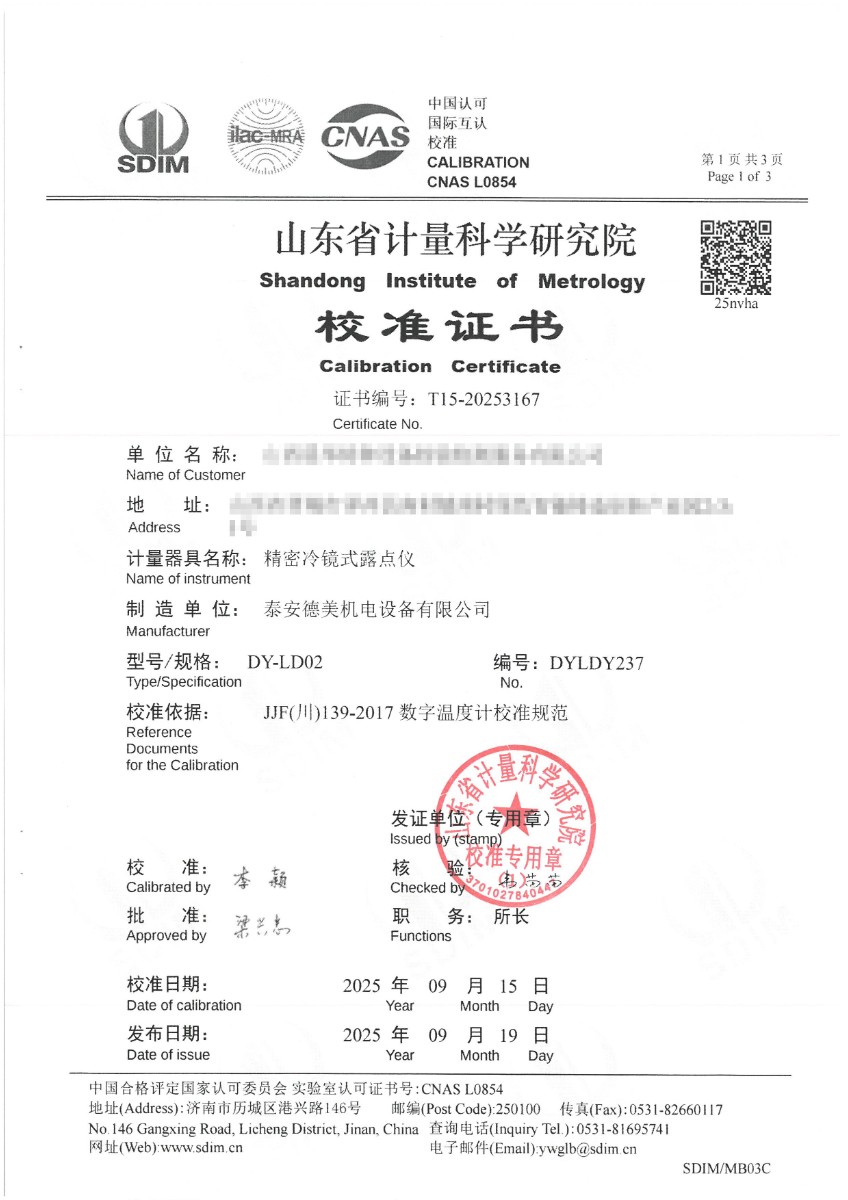 | 上一條:高精度數(shù)字溫度計(jì)(-20-100℃)校準(zhǔn)證書(shū) | 下一條:便攜式干體爐(-30-150℃)校準(zhǔn)證書(shū) |