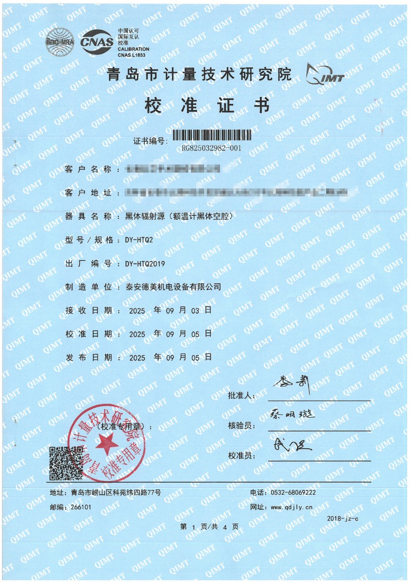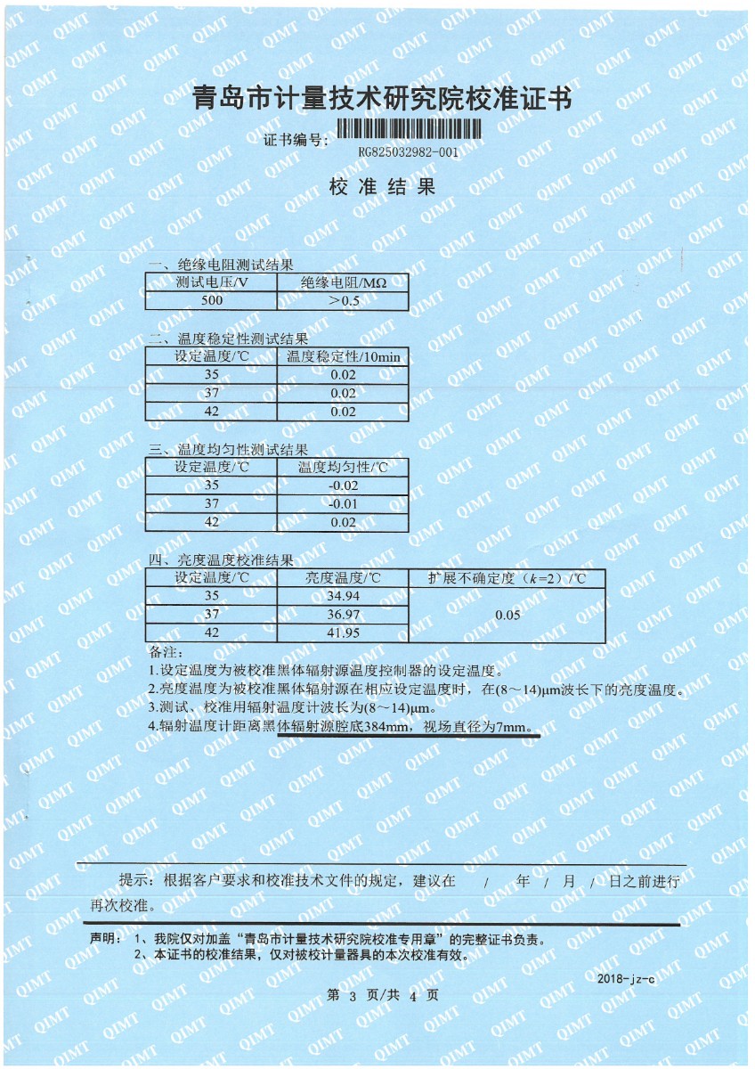 | 上一條:冷鏡式露點(diǎn)儀檢定、校準(zhǔn)證書 | 下一條:便攜式干體爐(-30-150℃)校準(zhǔn)證書 |