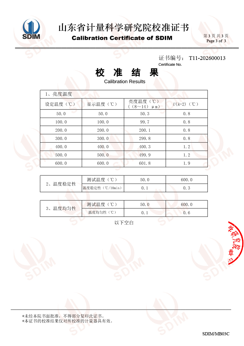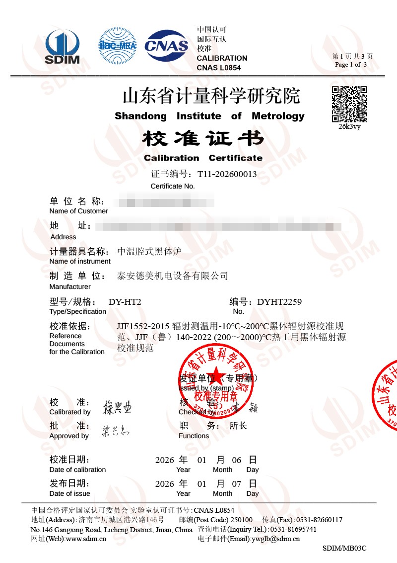 中溫腔式黑體校準(zhǔn)證書 2026-1-8 本文被閱讀 426 次