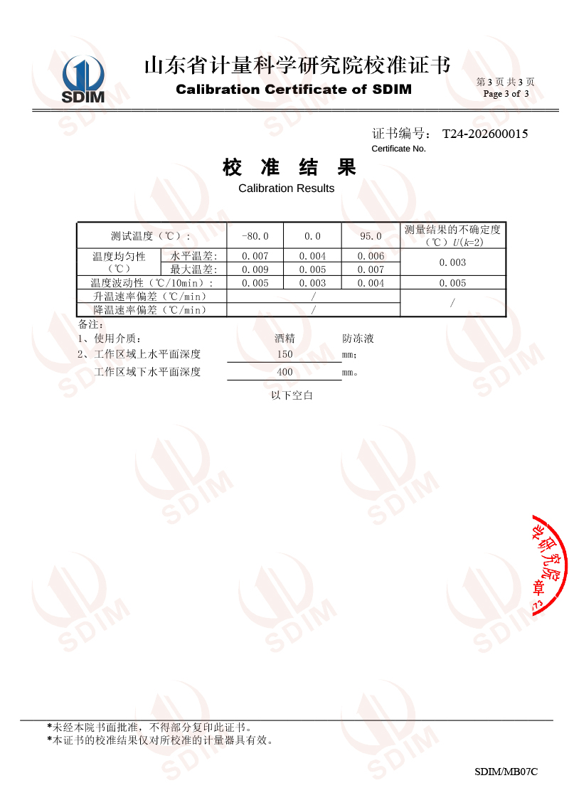 | 上一條:高精度制冷恒溫槽(-30~95℃)校準(zhǔn)證書(shū) | 下一條:水三相點(diǎn)瓶?jī)鲋婆c保存裝置校準(zhǔn)證書(shū) |