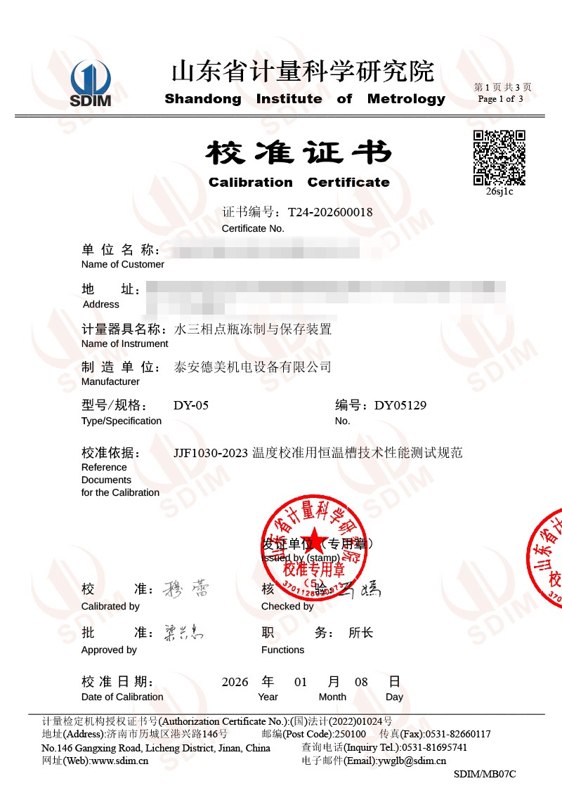 水三相點瓶凍制與保存裝置校準證書 2026-1-13 本文被閱讀 216 次