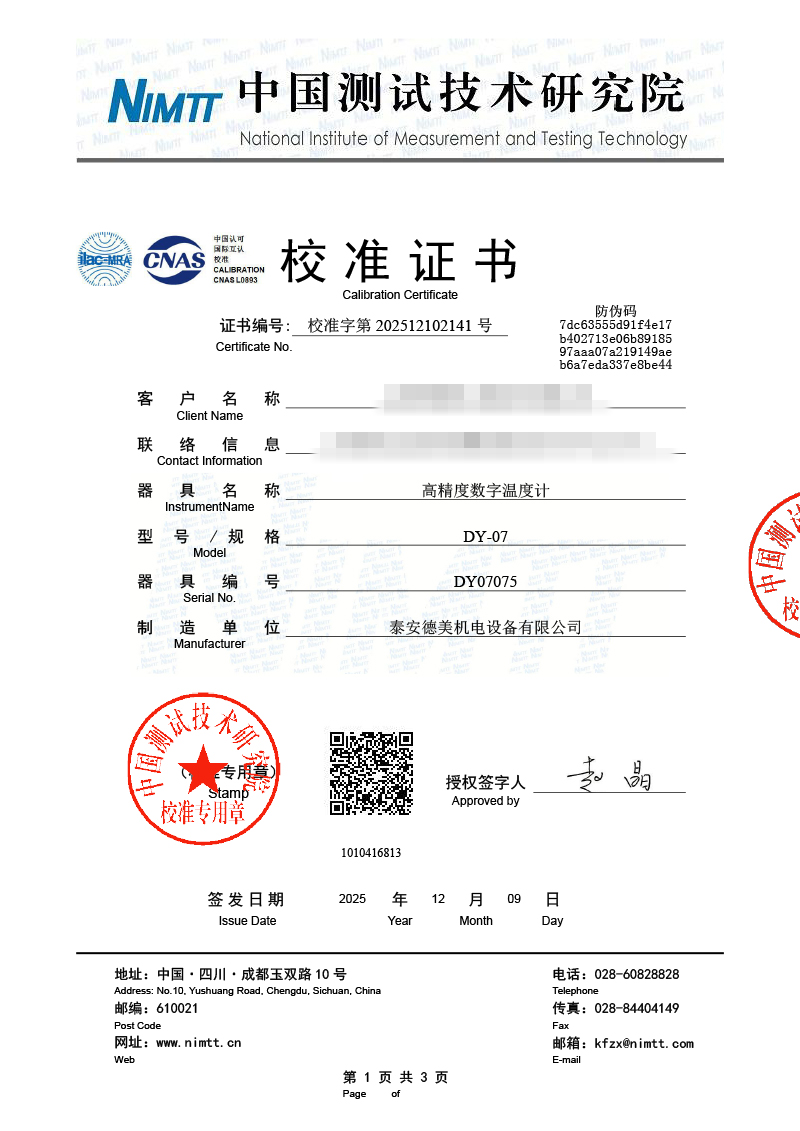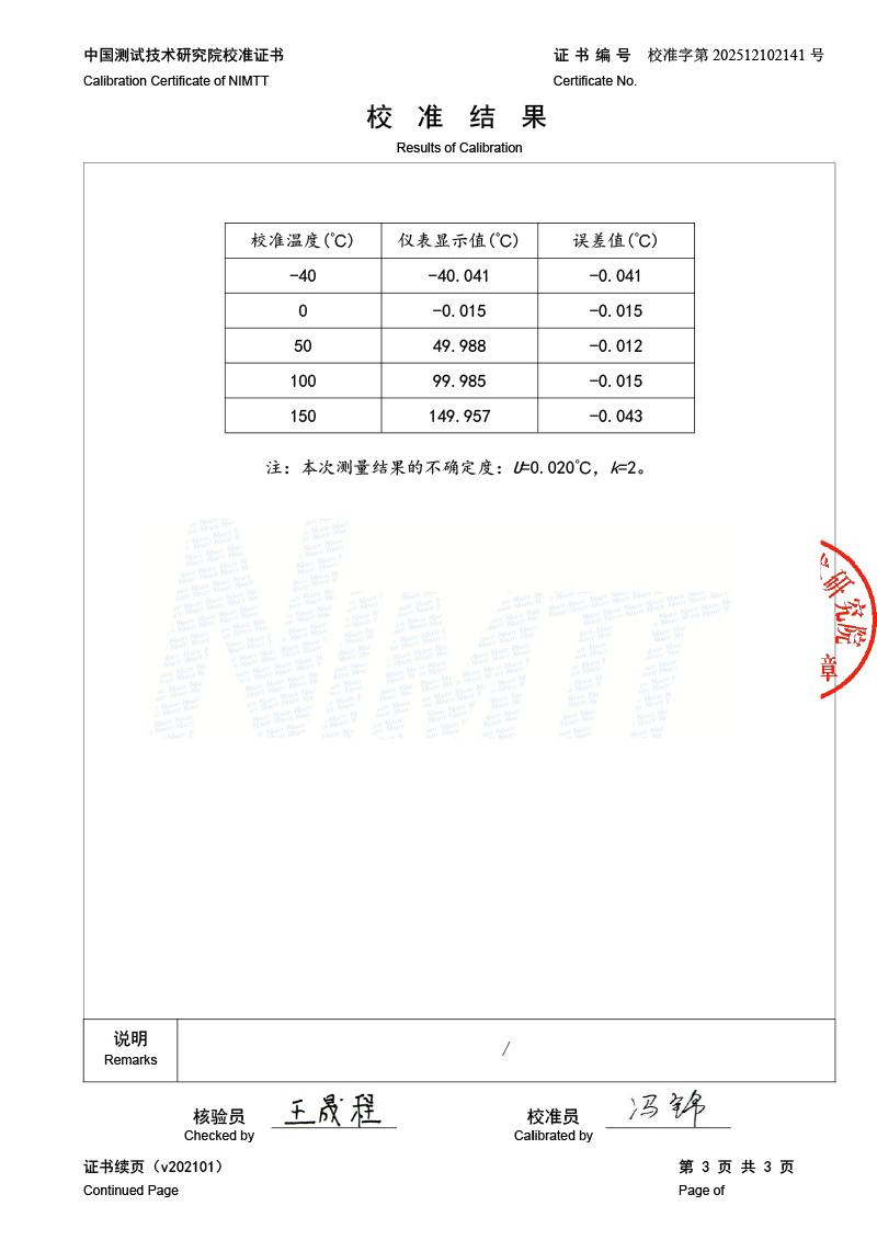 高精度數(shù)字溫度計(jì)校準(zhǔn)證書 2025-12-11 本文被閱讀 270 次