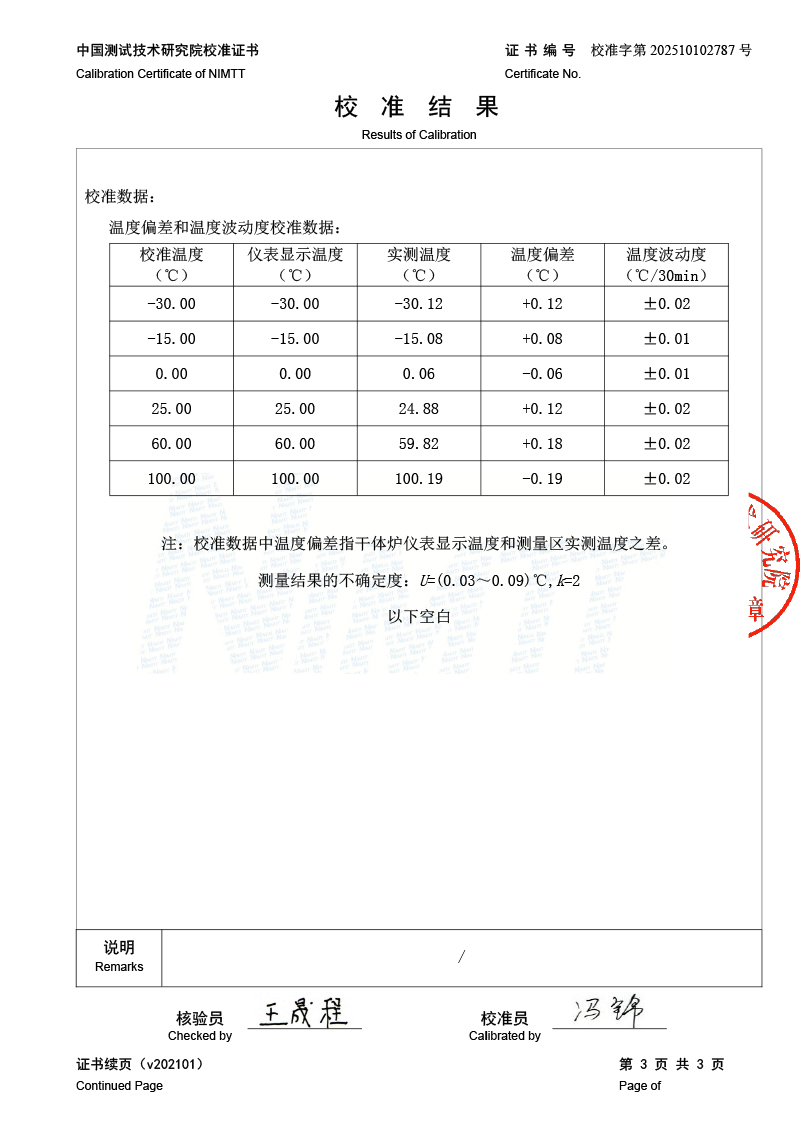 便攜式干體爐(-30-150℃)校準(zhǔn)證書 2025-10-21 本文被閱讀 55 次