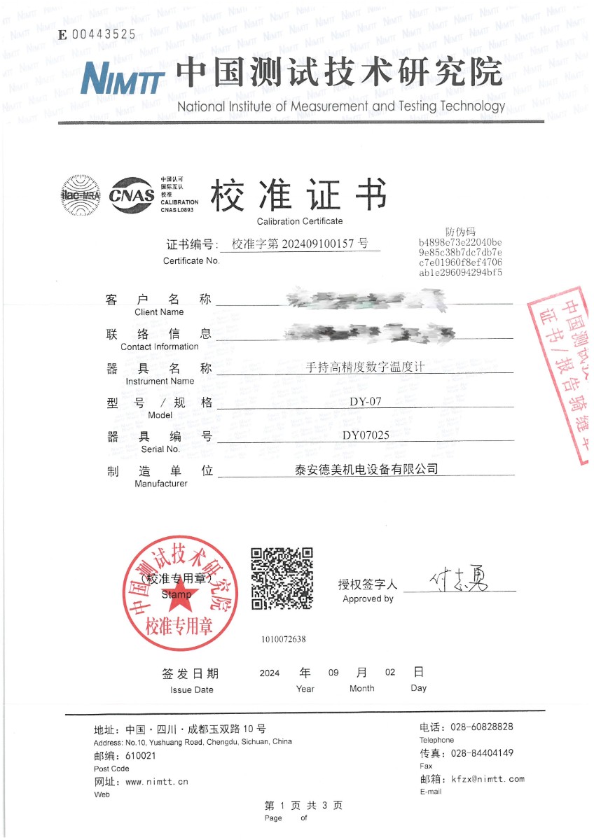 | 上一條:高精度數(shù)字溫度計(jì)(-50~200℃)校準(zhǔn)證書(shū) | 下一條:便攜式溫濕度檢定箱(-10-60℃)校準(zhǔn)證書(shū) |