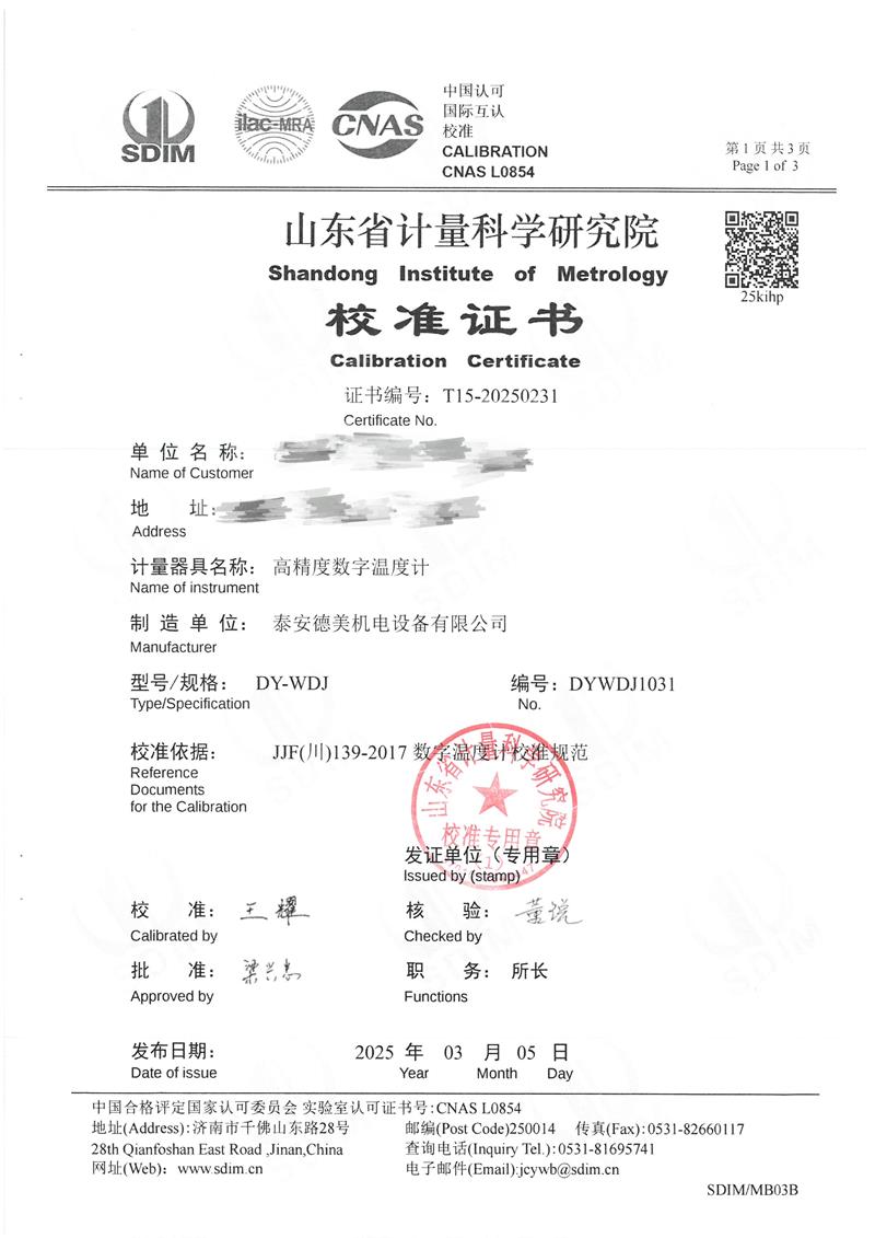 高精度數(shù)字溫度計(jì)校準(zhǔn)證書 2025-3-8 本文被閱讀 3007 次