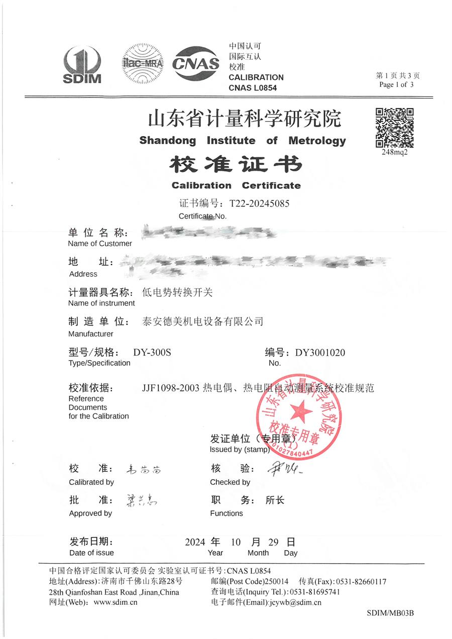 | 上一條:標(biāo)準(zhǔn)濕度發(fā)生器校準(zhǔn)證書 | 下一條:便攜式干體爐(-30-150℃)校準(zhǔn)證書 |