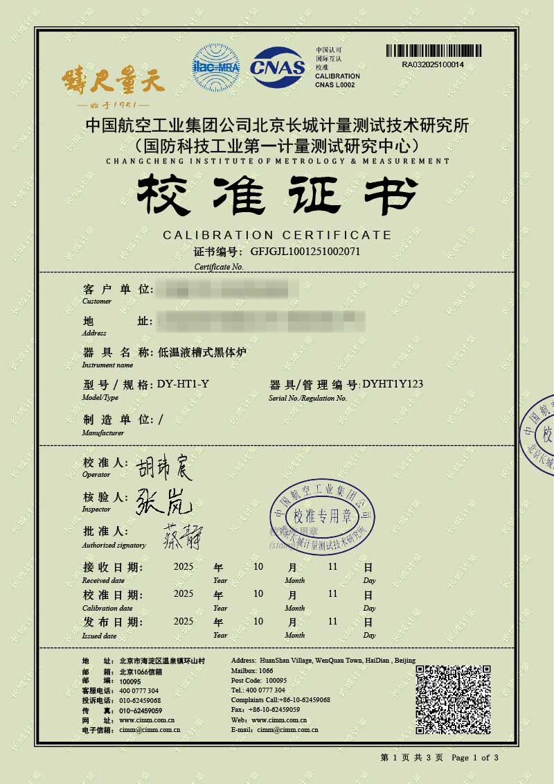 低溫液槽式黑體爐(-40-100℃)校準證書 2025-10-30 本文被閱讀 7 次