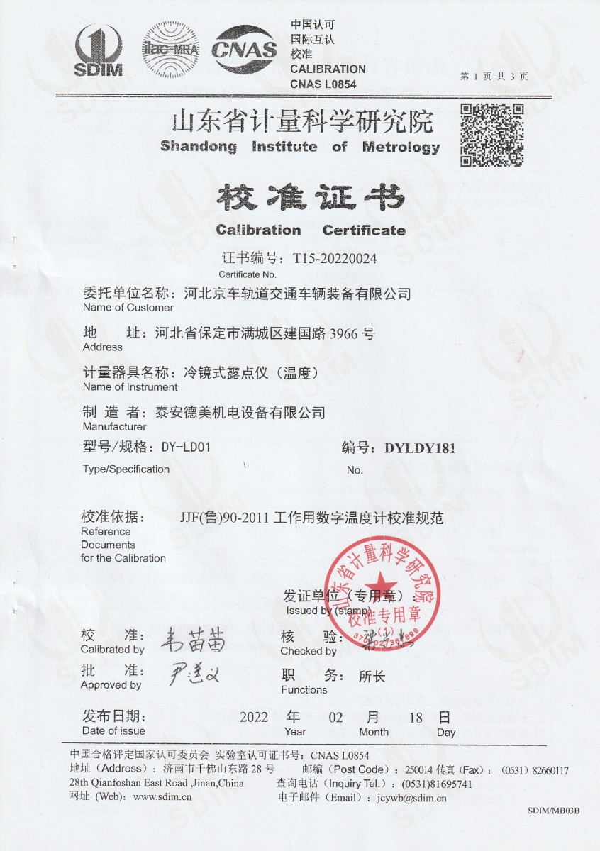 | 上一條:鄭州賽奧電子股份有限公司-干體爐DYGT150246 | 下一條:便攜式干體爐(-30-150℃)校準(zhǔn)證書 |