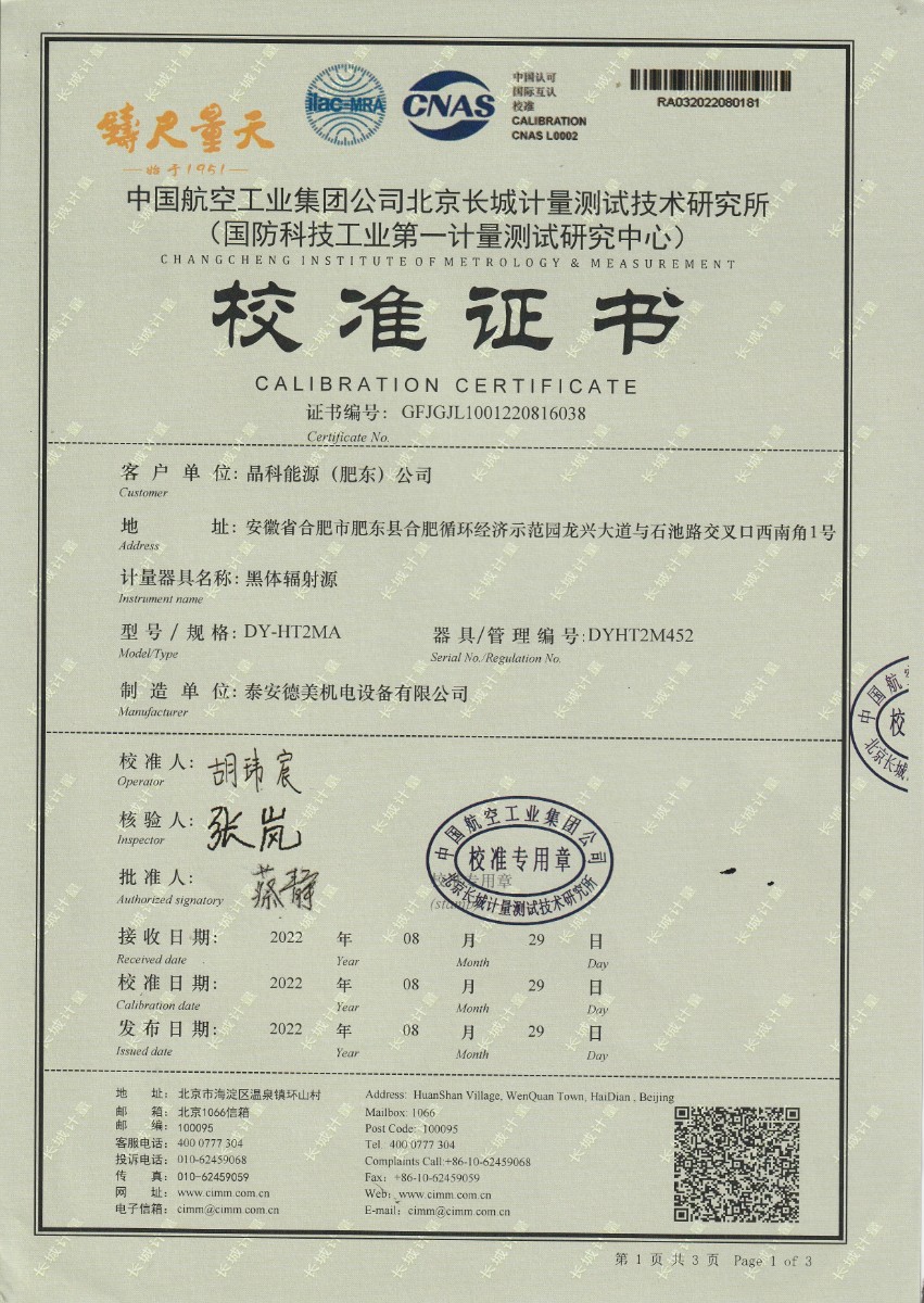 晶科能源(肥東)公司-黑體輻射源 2022-9-5 本文被閱讀 12404 次