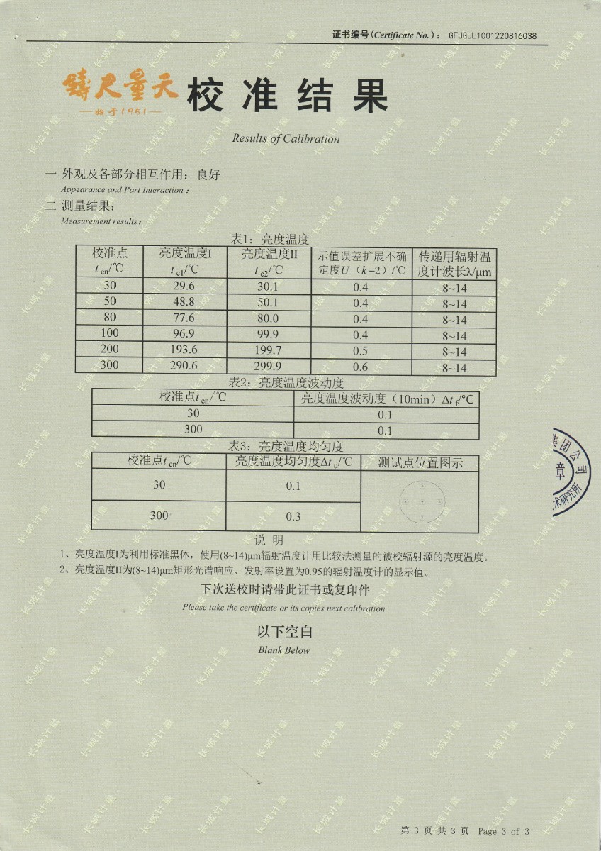 上一條:國(guó)科天成科技股份有限公司-黑體輻射源下一條:便攜式溫濕度檢定箱(-10-60℃)校準(zhǔn)證書