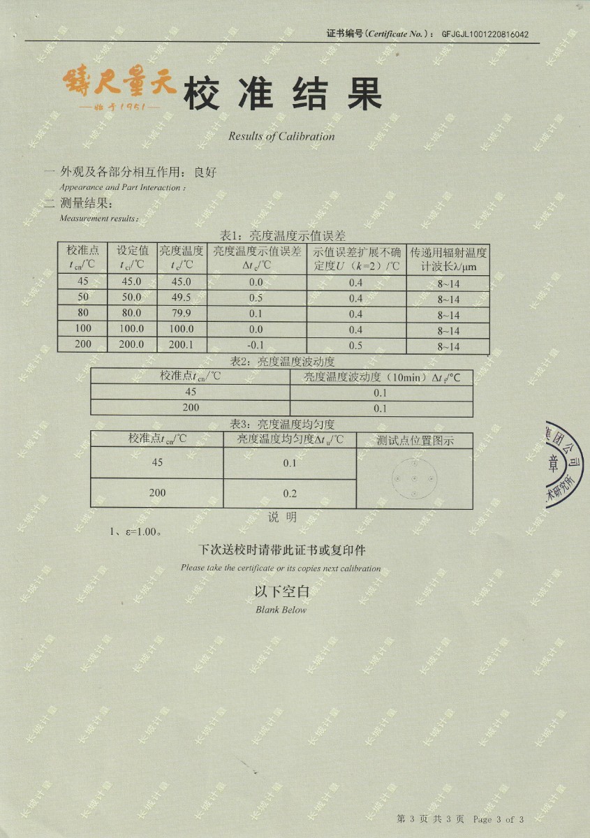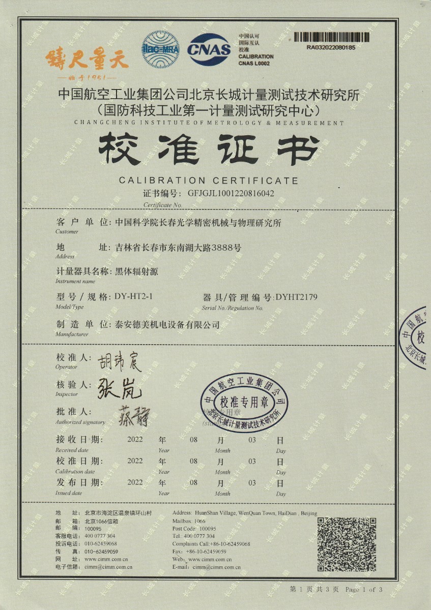 | 上一條:中國科學(xué)院長春光學(xué)精密機(jī)械與物理研究所-黑體爐DY-HT1-11 | 下一條:便攜式干體爐(-30-150℃)校準(zhǔn)證書 |