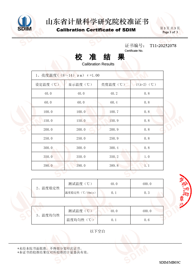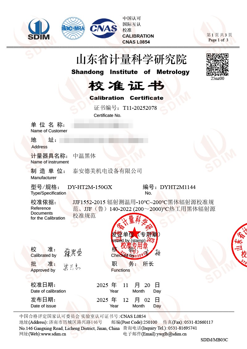 中溫黑體校準(zhǔn)證書 2025-12-4 本文被閱讀 43 次