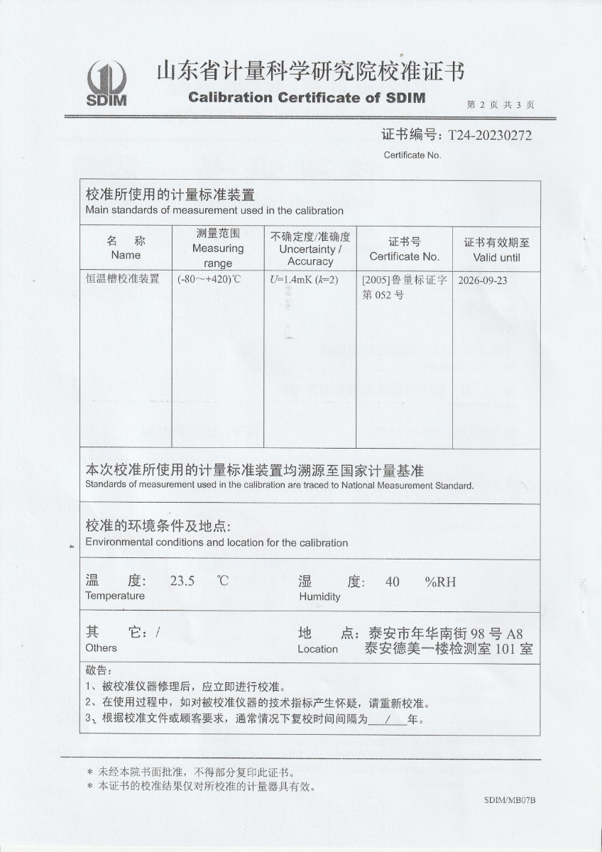 | 上一條:魯南中聯(lián)水泥有限公司 便攜式制冷恒溫槽 校準(zhǔn)證書 | 下一條:便攜式溫濕度檢定箱(-10-60℃)校準(zhǔn)證書 |