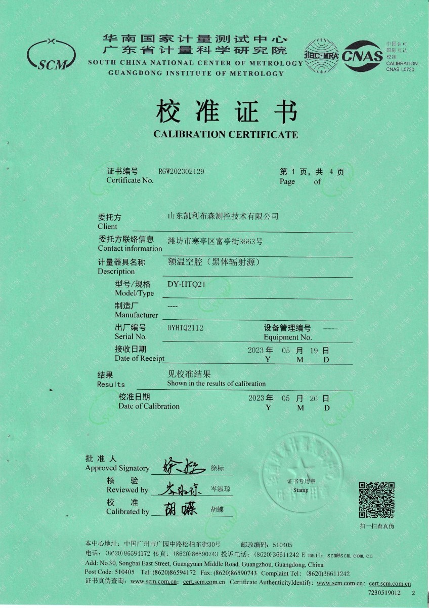 | 上一條:魯南中聯(lián)水泥有限公司 便攜式恒溫油槽 校準(zhǔn)證書 | 下一條:便攜式溫濕度檢定箱(-10-60℃)校準(zhǔn)證書 |