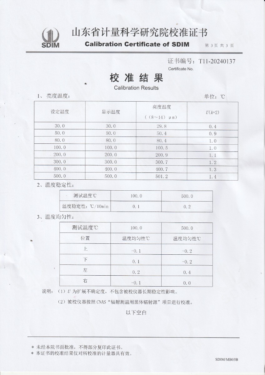 面源黑體爐校準(zhǔn)證書(shū) 2024-3-27 本文被閱讀 6099 次