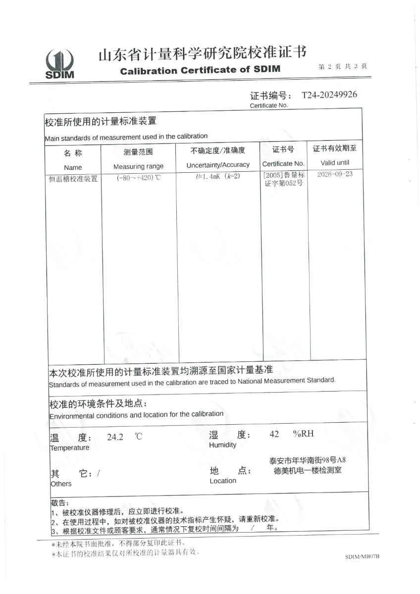 | 上一條:熱電偶、熱電阻自動(dòng)檢測(cè)系統(tǒng)校準(zhǔn)證書 | 下一條:便攜式干體爐(-30-150℃)校準(zhǔn)證書 |