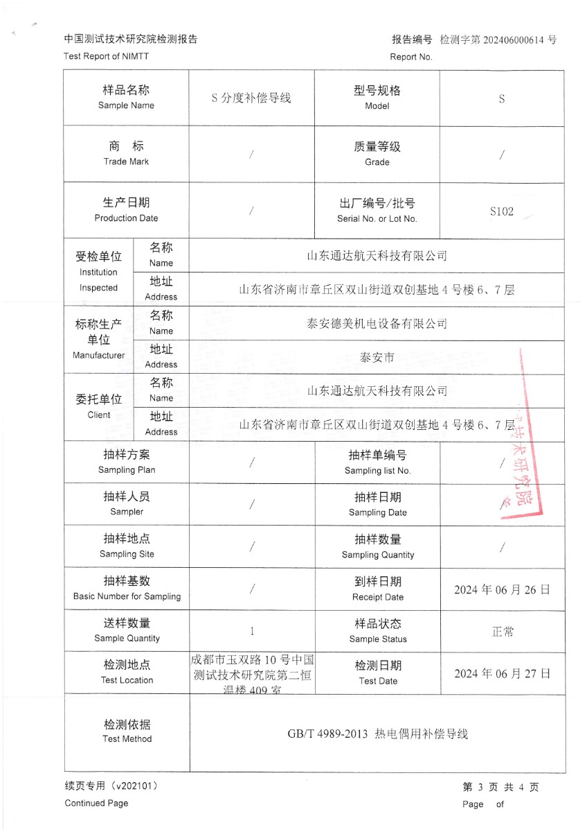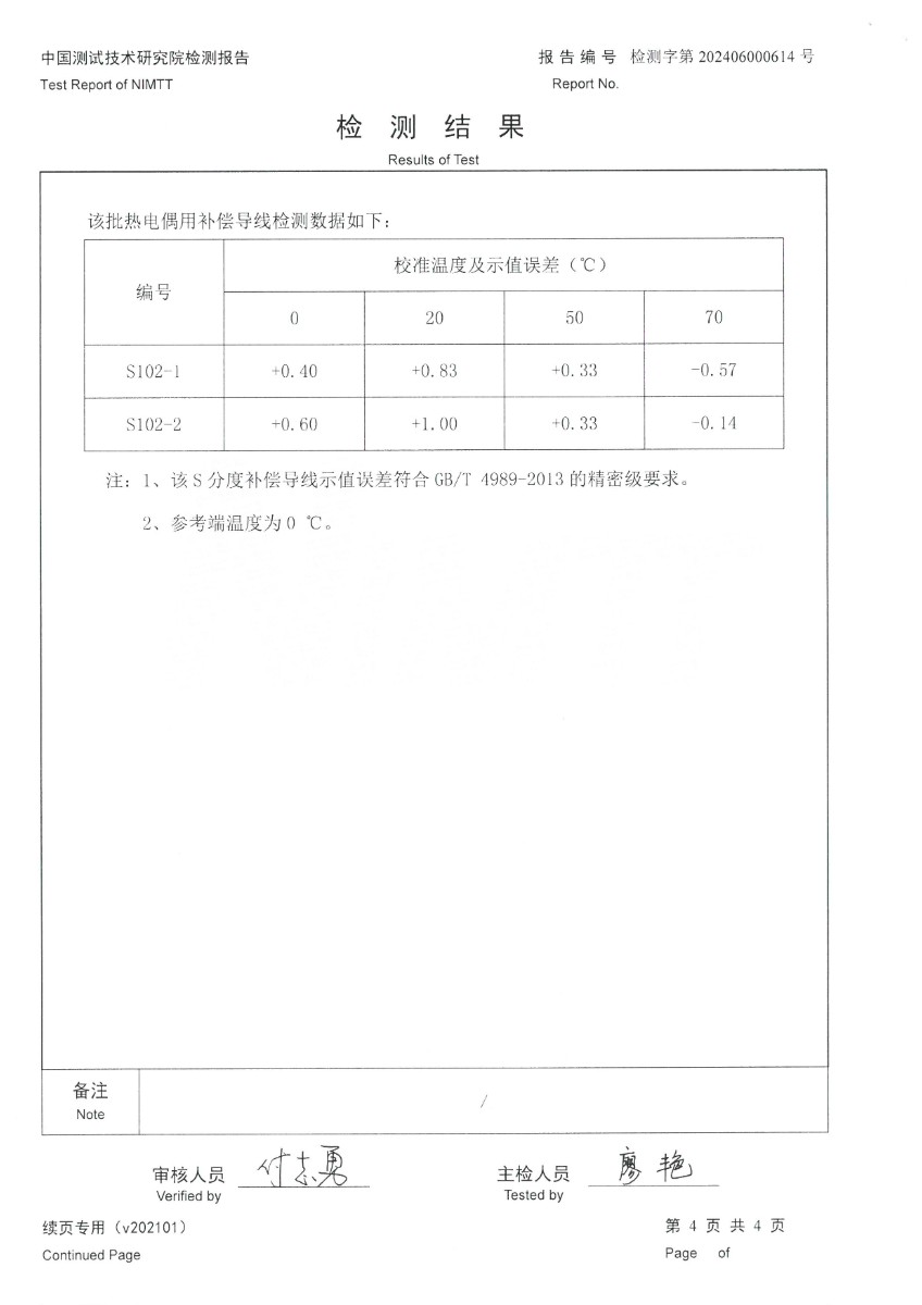 | 上一條:補(bǔ)償導(dǎo)線K分度校準(zhǔn)證書 | 下一條:便攜式干體爐(-30-150℃)校準(zhǔn)證書 |