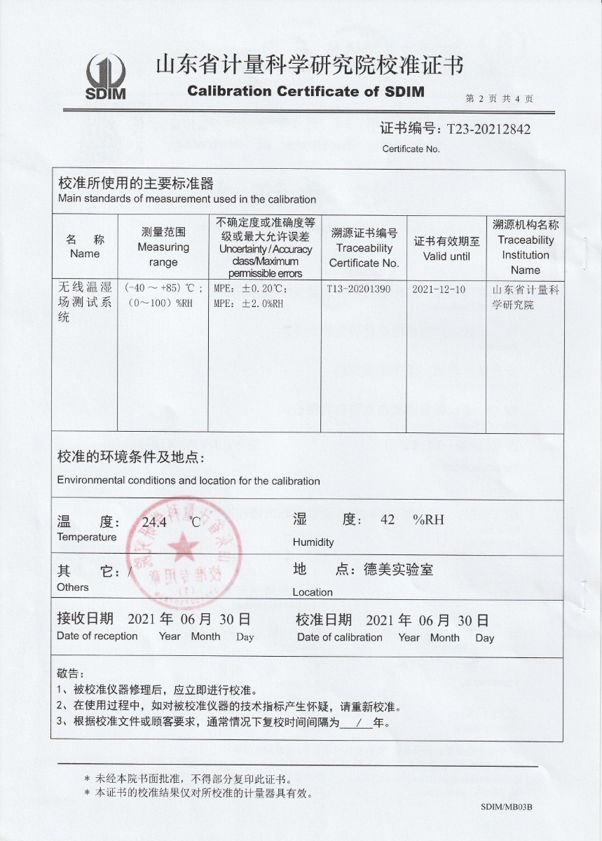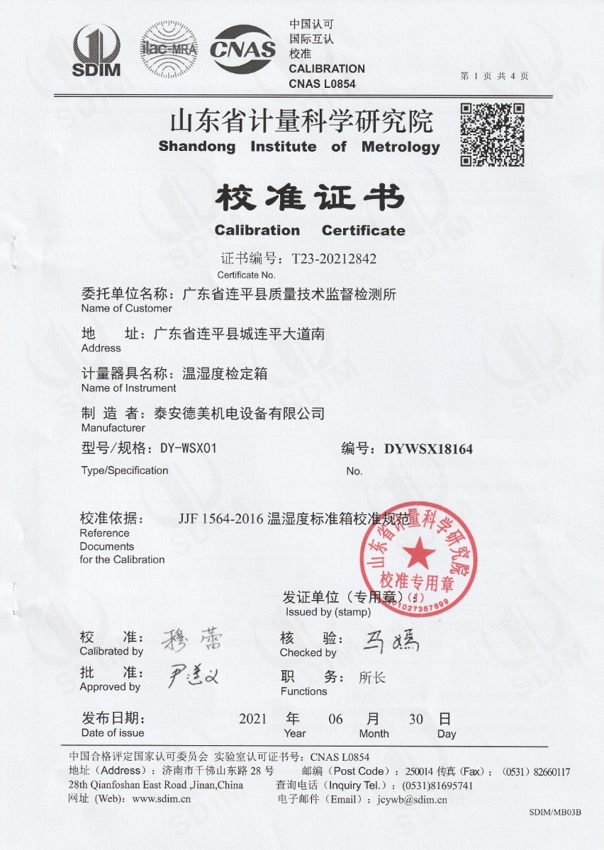 | 上一條:河北奧潤順達(dá)窗業(yè)有限公司-便攜式制冷恒溫槽 | 下一條:便攜式干體爐(-30-150℃)校準(zhǔn)證書 |