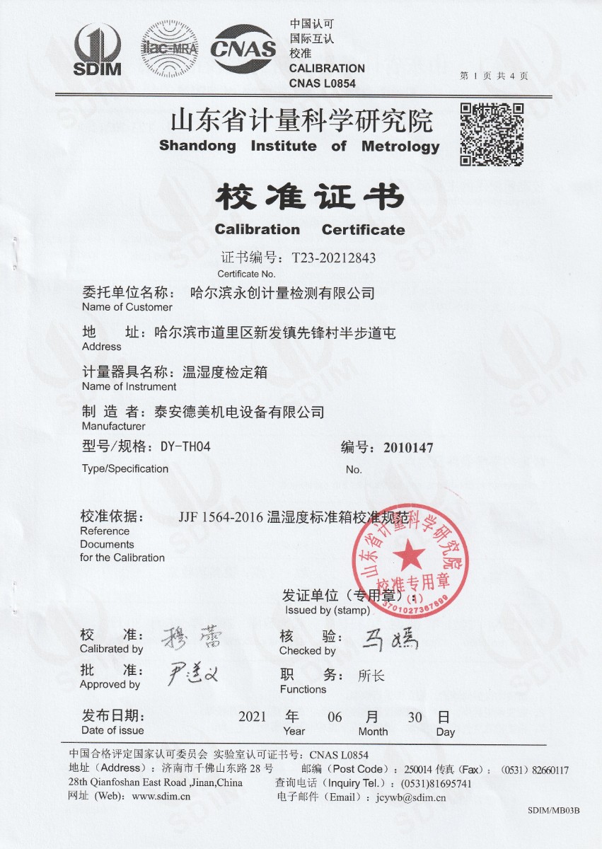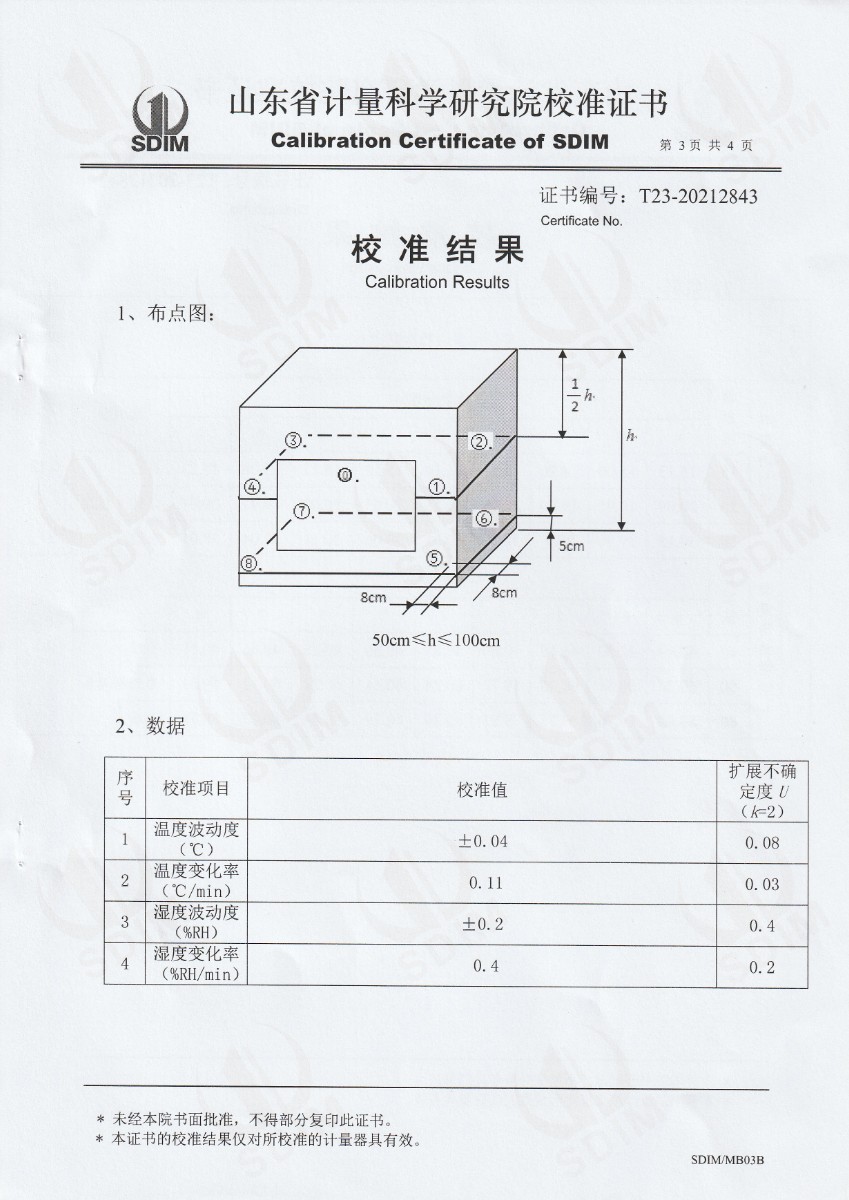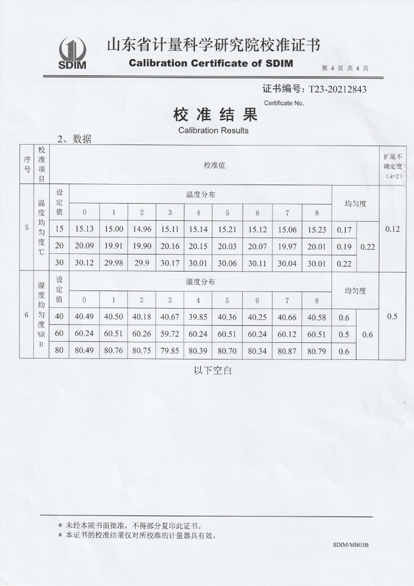 | 上一條:廣東省連平縣質(zhì)量技術(shù)監(jiān)督檢測所-溫濕度檢定箱 | 下一條:便攜式干體爐(-30-150℃)校準證書 |