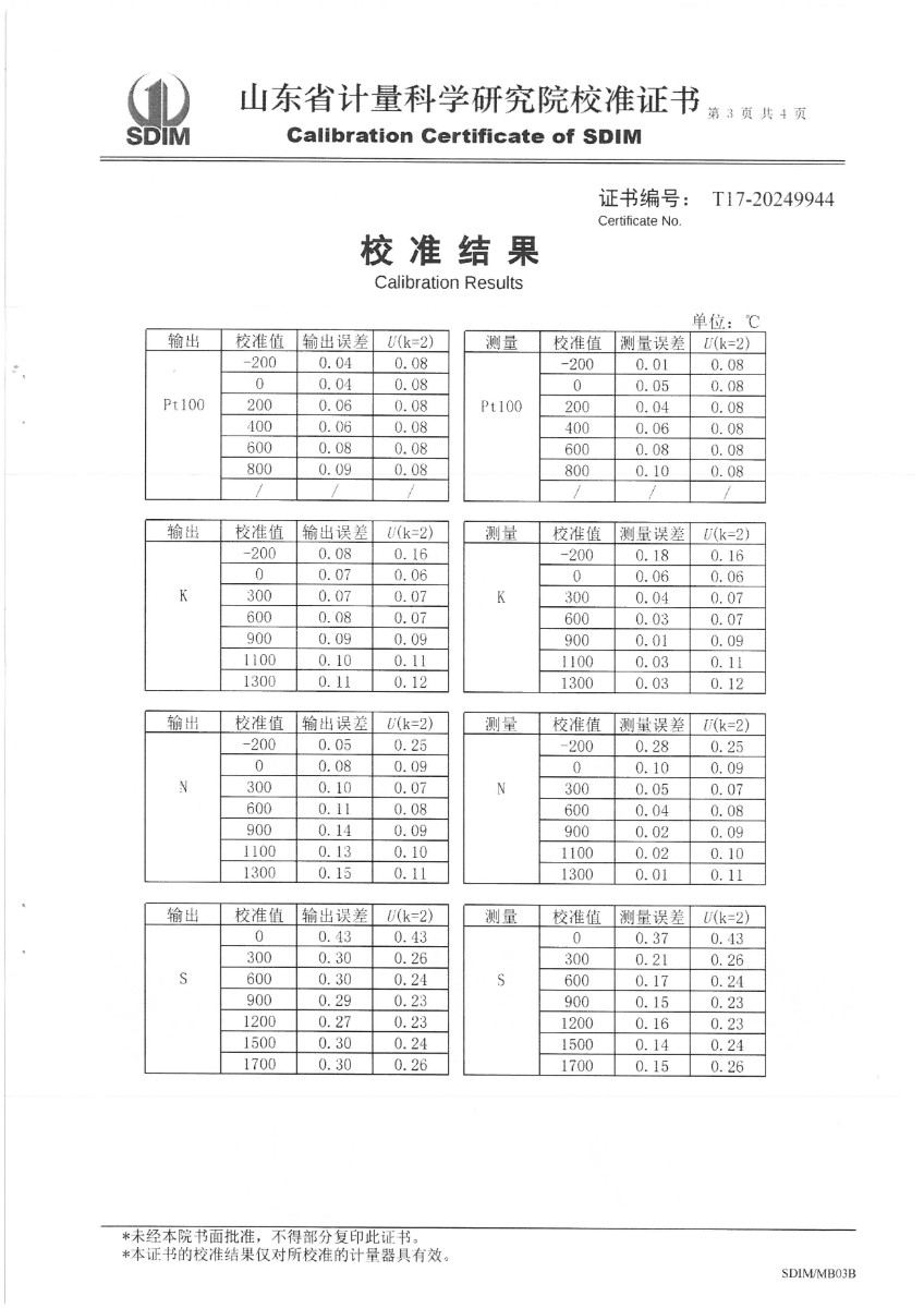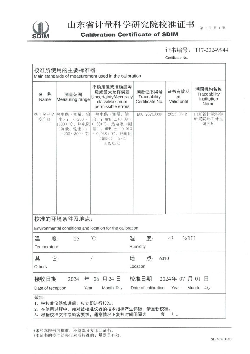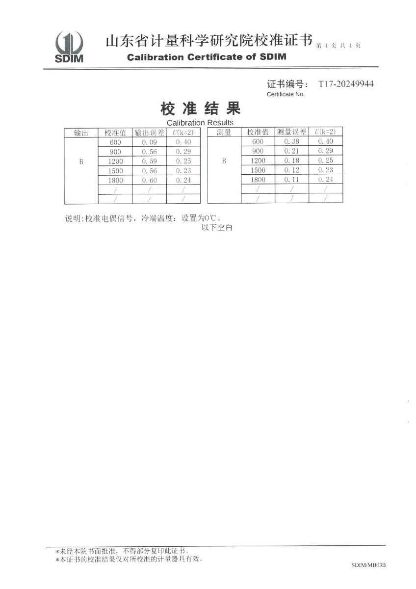 | 上一條:水三相點(diǎn)瓶凍制保存裝置(-20~95℃)校準(zhǔn)證書 | 下一條:便攜式干體爐(-30-150℃)校準(zhǔn)證書 |