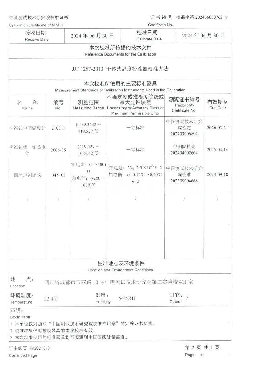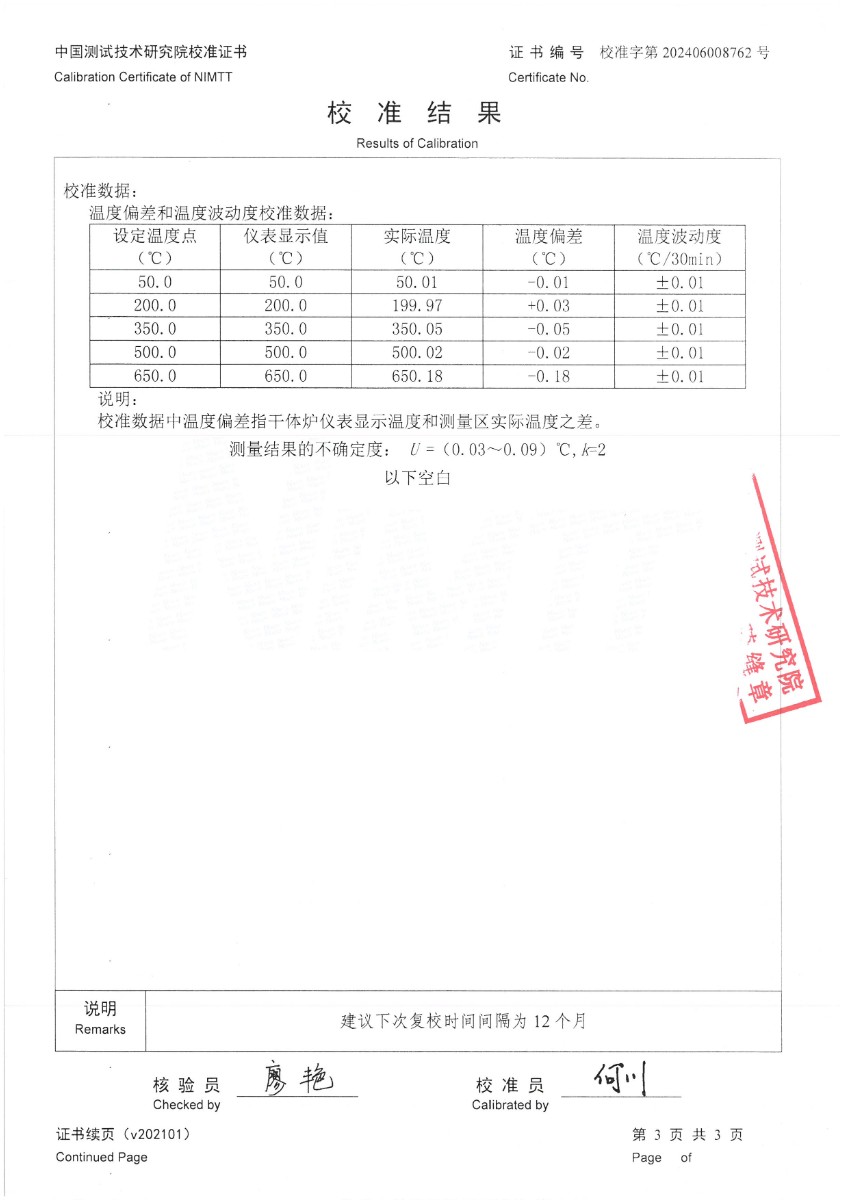 | 上一條:中溫干體爐295(50~650℃)校準(zhǔn)證書 | 下一條:超低溫面源黑體爐(-40-80℃)校準(zhǔn)證書 |