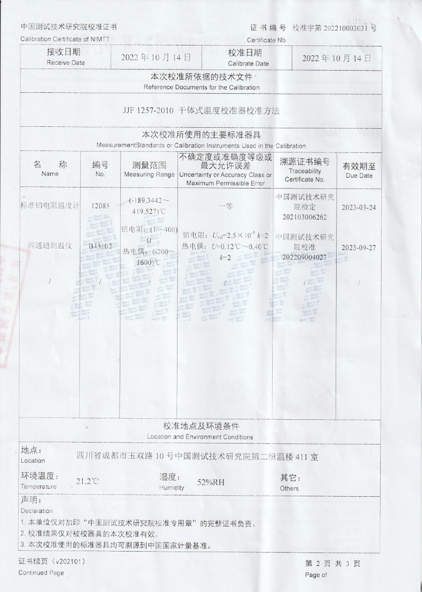 | 上一條:吉林省安全生產(chǎn)檢測(cè)檢驗(yàn)股份有限公司-冷鏡式露點(diǎn)儀檢定證書 | 下一條:溫濕度檢定箱(-5~65℃)校準(zhǔn)證書 |
