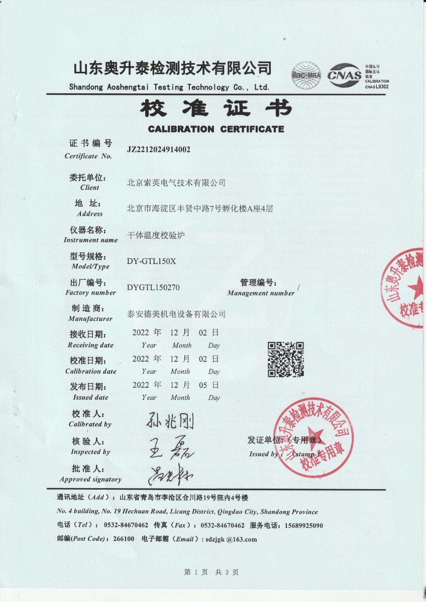 北京索英電氣技術有限公司 干體溫度校驗爐 2022-12-8 本文被閱讀 12943 次