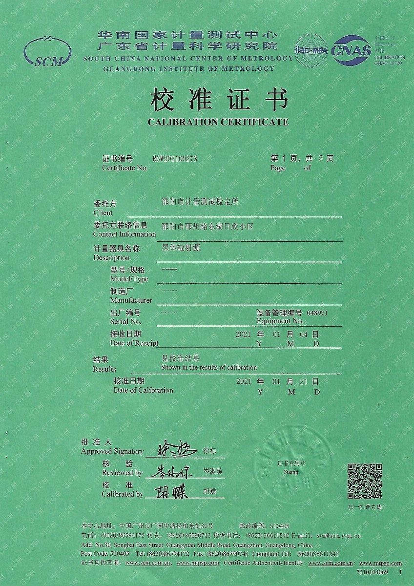 | 上一條:長沙彼樂機(jī)電設(shè)備有限公司-體黑體爐恒溫槽部分 | 下一條:高精度制冷恒溫槽(-80~100℃)校準(zhǔn)證書 |