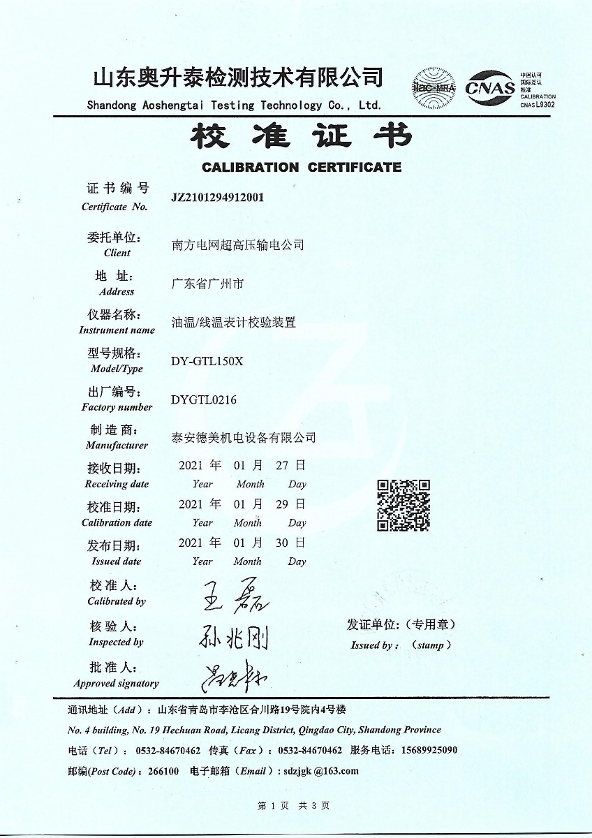 | 上一條:長(zhǎng)沙彼樂機(jī)電設(shè)備有限公司-體溫黑體爐額溫部分 | 下一條:高精度制冷恒溫槽(-80~100℃)校準(zhǔn)證書 |
