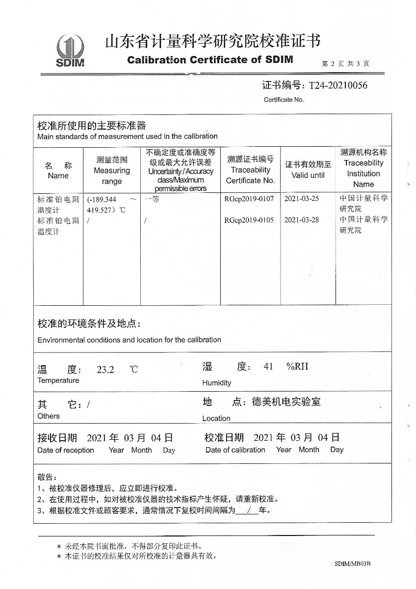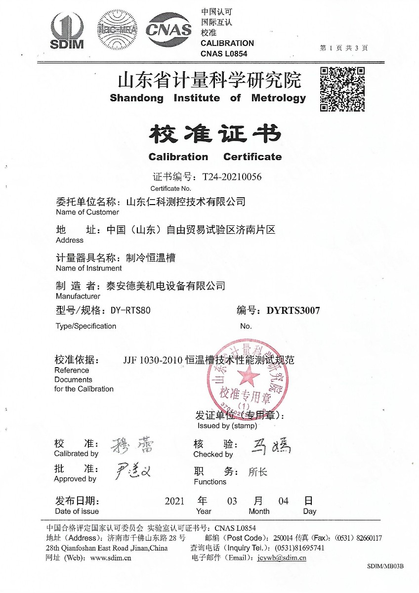 | 上一條:黑龍江華馨檢測科技有限公司-黑體輻射源 | 下一條:高精度制冷恒溫槽(-80~100℃)校準(zhǔn)證書 |