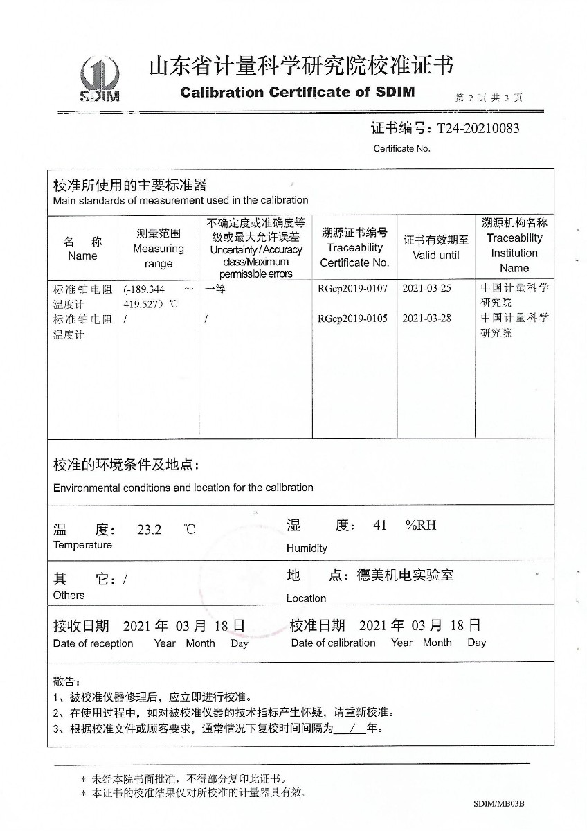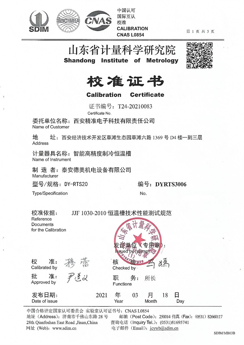 | 上一條:西安電子科技有限責(zé)任公司-智能高精度恒溫油槽 | 下一條:溫濕度檢定箱(-5~65℃)校準證書 |