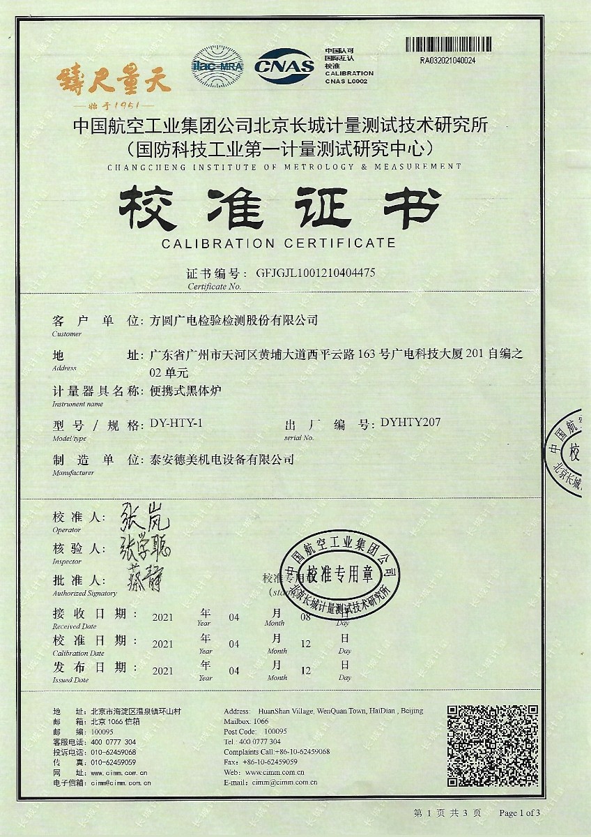 方圓廣電檢驗檢測股份有限公司-便攜式黑體爐 2021-4-16 本文被閱讀 15624 次