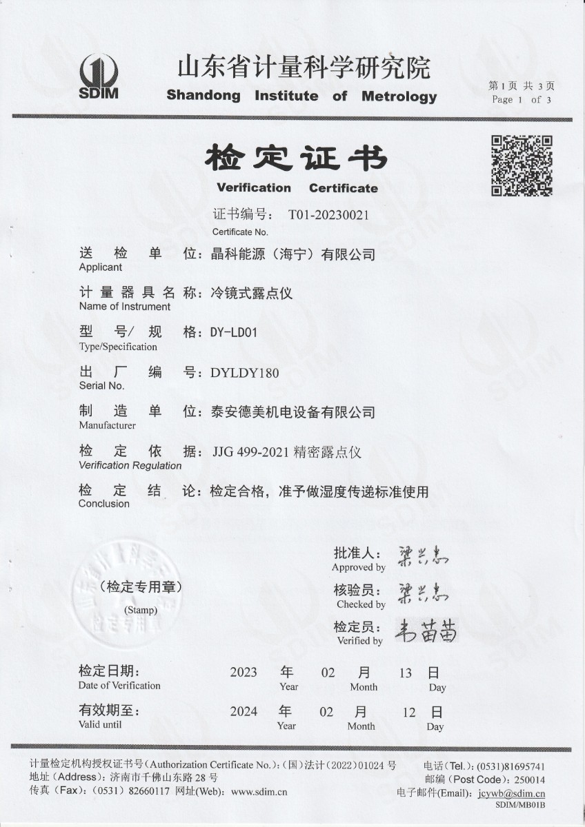 | 上一條:西安楊森制藥有限公司 冷鏡式露點(diǎn)儀(溫度) 校準(zhǔn)證書 | 下一條:超低溫面源黑體爐(-40-80℃)校準(zhǔn)證書 |