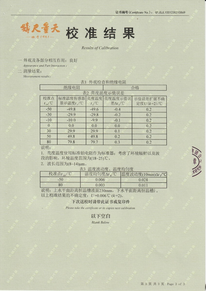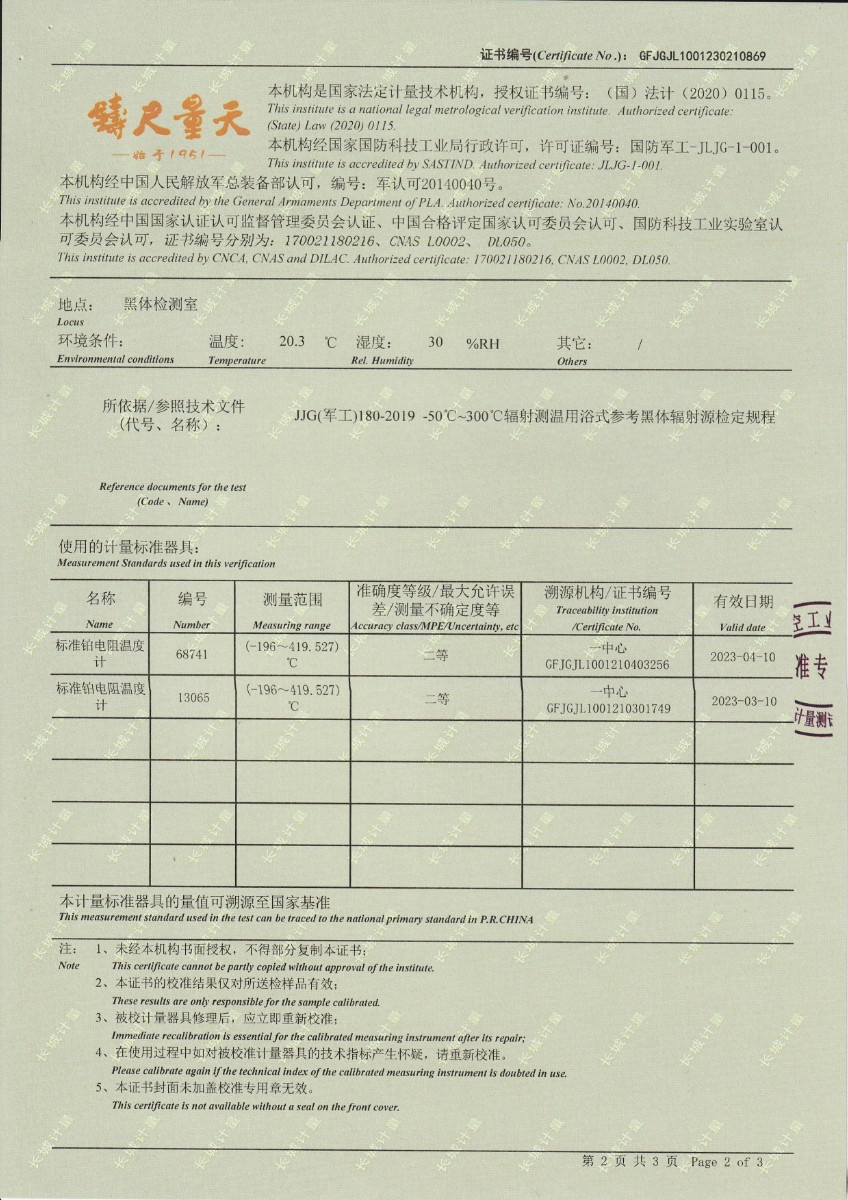 西安和其光電科技股份有限公司 低溫浴式黑體輻射源 校準證書 2023-2-25 本文被閱讀 10998 次